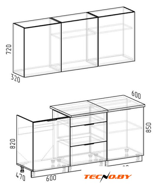 | Высота нижних шкафов | 85 см |