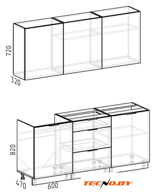 линейная, длина 220 см, ширина 60 см, каркас ЛДСП, фасад ЛДСП, установка мойки: накладная мойка, ширина шкафа под мойку 80 см