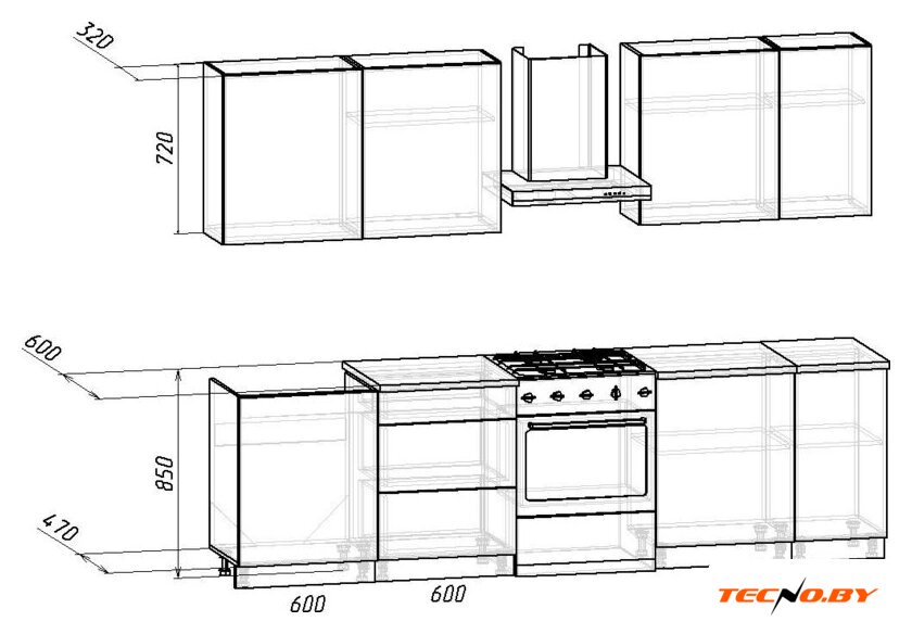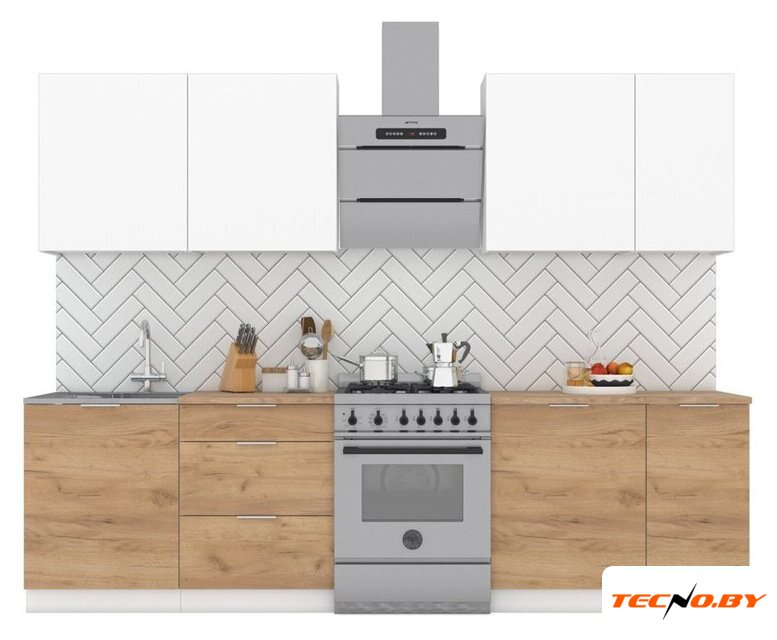 линейная, длина 260 см, ширина 60 см, каркас ЛДСП, фасад ЛДСП, установка мойки: накладная мойка, ширина шкафа под мойку 80 см