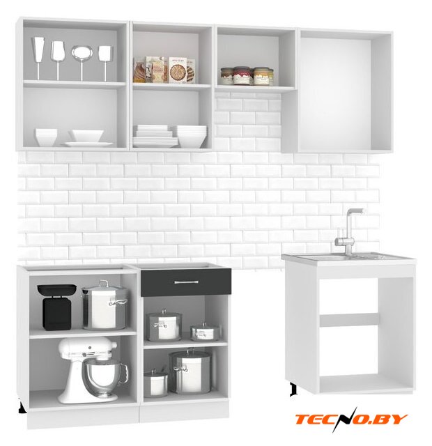 линейная, длина 220 см, ширина 60 см, каркас ЛДСП, фасад ЛДСП, установка мойки: накладная мойка, ширина шкафа под мойку 60 см