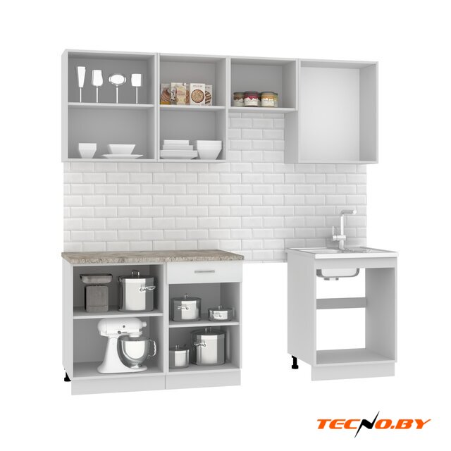линейная, длина 220 см, ширина 60 см, каркас ЛДСП, фасад ЛДСП, установка мойки: накладная мойка, ширина шкафа под мойку 60 см
