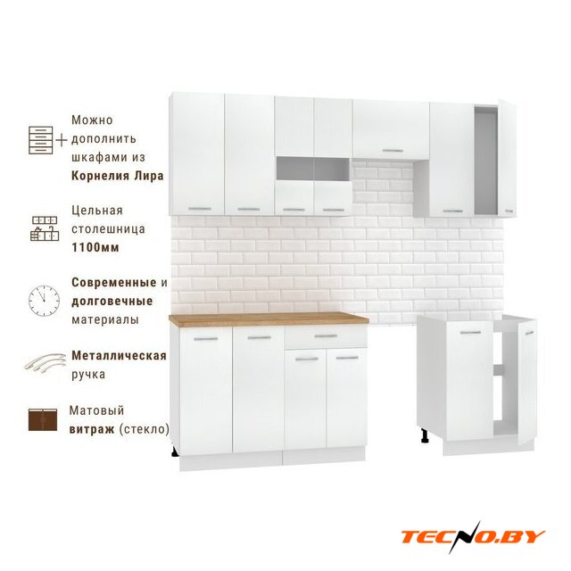 линейная, длина 220 см, ширина 60 см, каркас ЛДСП, фасад ЛДСП, установка мойки: накладная мойка, ширина шкафа под мойку 60 см