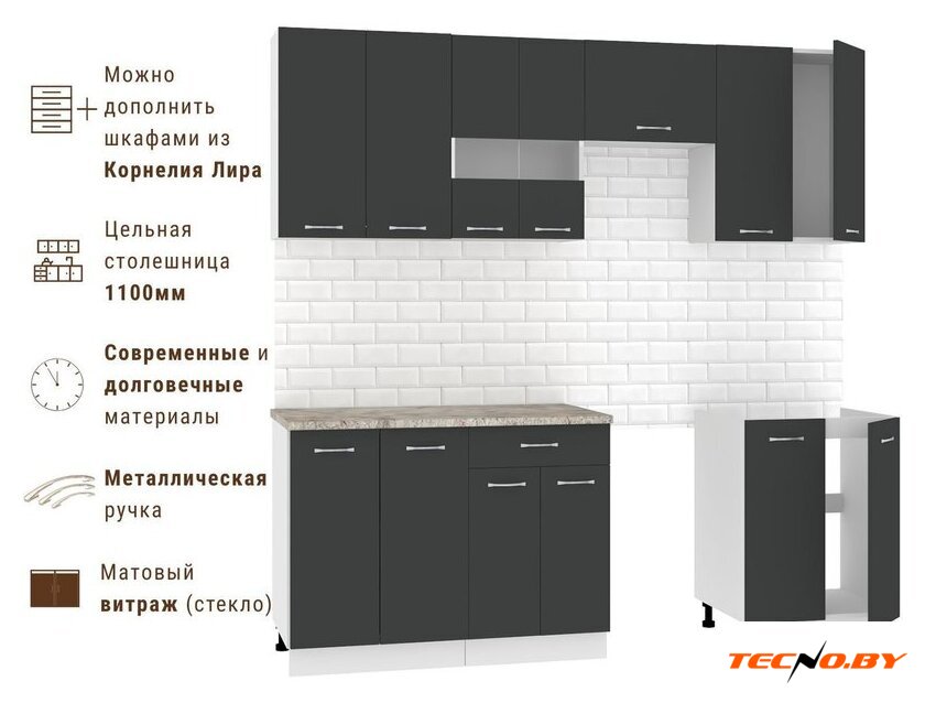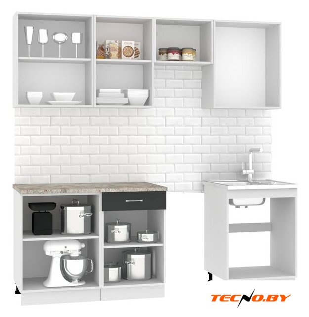 линейная, длина 220 см, ширина 60 см, каркас ЛДСП, фасад ЛДСП, установка мойки: накладная мойка, ширина шкафа под мойку 60 см