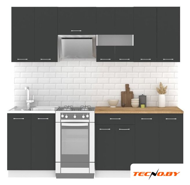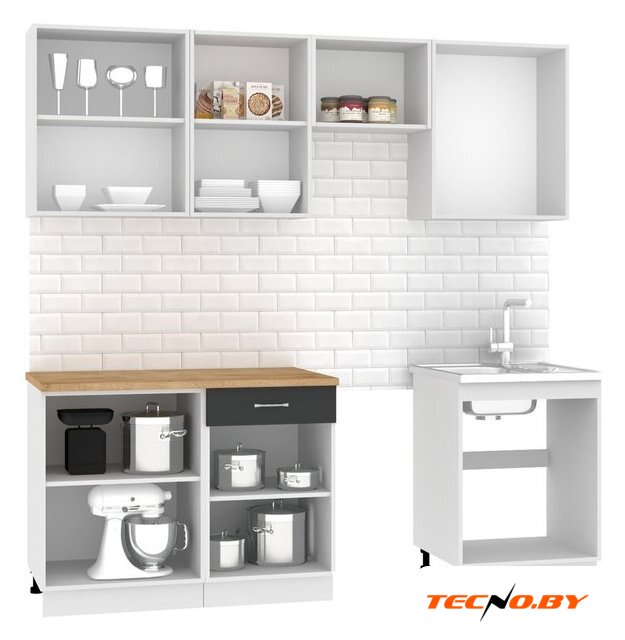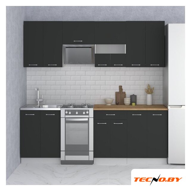 линейная, длина 220 см, ширина 60 см, каркас ЛДСП, фасад ЛДСП, установка мойки: накладная мойка, ширина шкафа под мойку 60 см