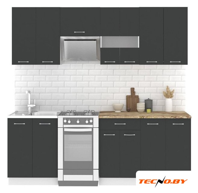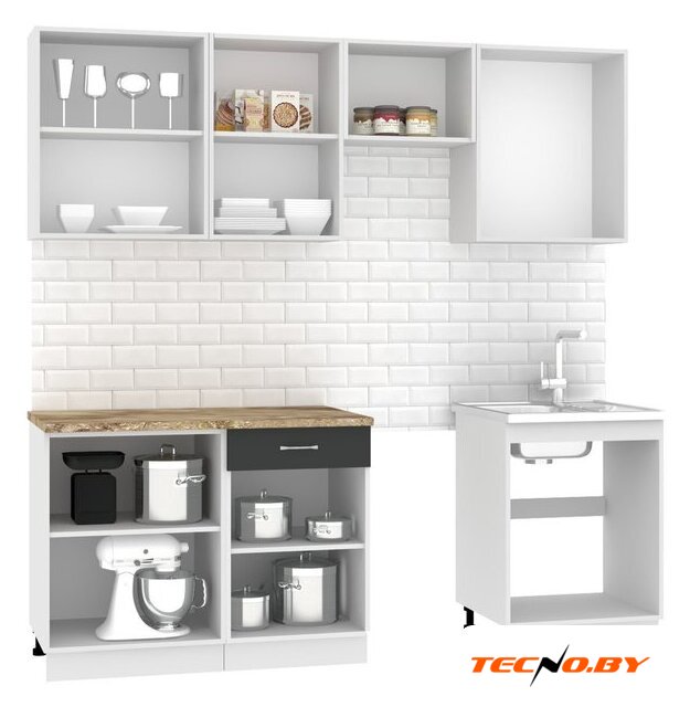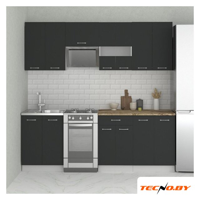 линейная, длина 220 см, ширина 60 см, каркас ЛДСП, фасад ЛДСП, установка мойки: накладная мойка, ширина шкафа под мойку 60 см