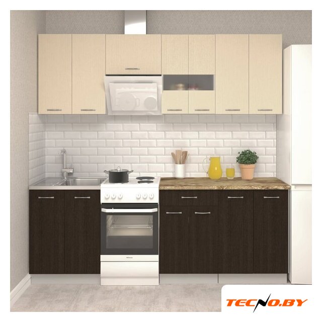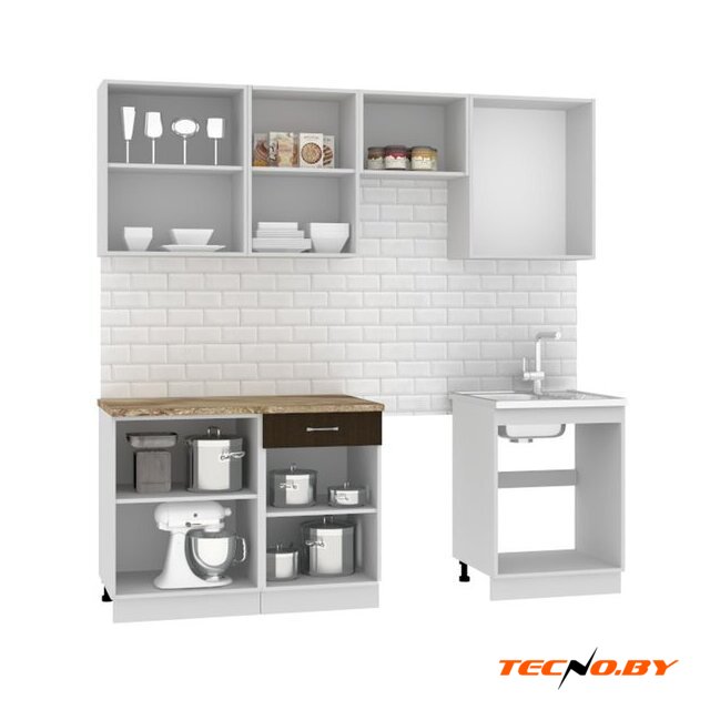 линейная, длина 220 см, ширина 60 см, каркас ЛДСП, фасад ЛДСП, установка мойки: накладная мойка, ширина шкафа под мойку 60 см