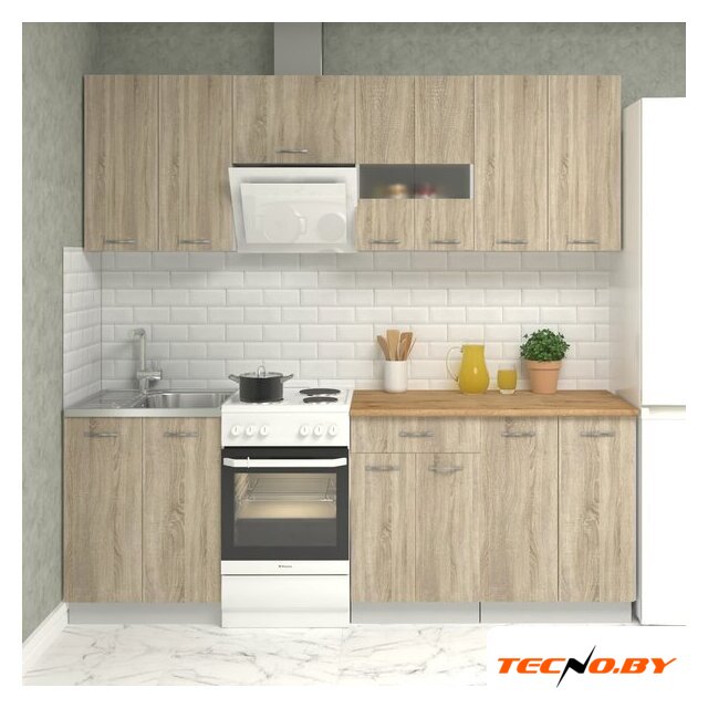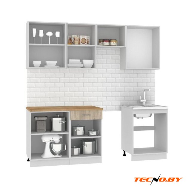 линейная, длина 220 см, ширина 60 см, каркас ЛДСП, фасад ЛДСП, установка мойки: накладная мойка, ширина шкафа под мойку 60 см
