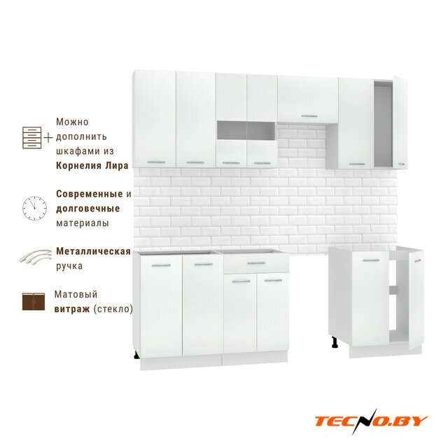 линейная, длина 200 см, ширина 60 см, каркас ЛДСП, фасад ЛДСП, установка мойки: врезная мойка, ширина шкафа под мойку 60 см