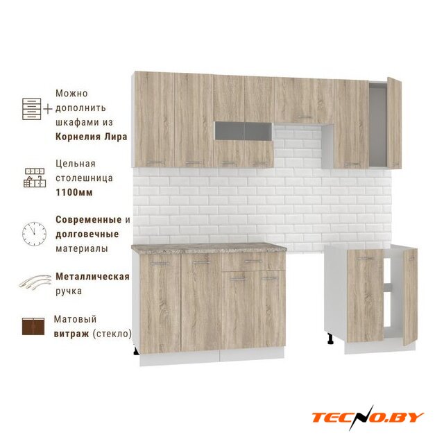 линейная, длина 220 см, ширина 60 см, каркас ЛДСП, фасад ЛДСП, установка мойки: накладная мойка, ширина шкафа под мойку 60 см