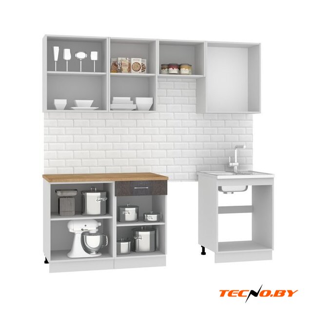 линейная, длина 220 см, ширина 60 см, каркас ЛДСП, фасад ЛДСП, установка мойки: накладная мойка, ширина шкафа под мойку 60 см