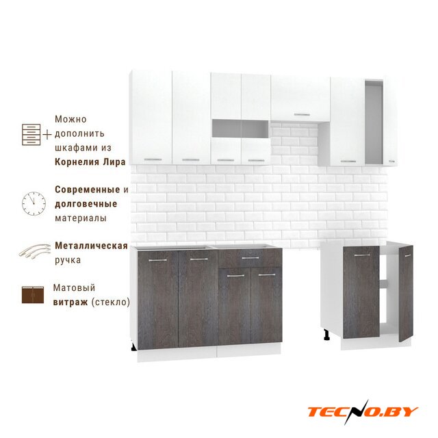 линейная, длина 200 см, ширина 60 см, каркас ЛДСП, фасад ЛДСП, установка мойки: врезная мойка, ширина шкафа под мойку 60 см