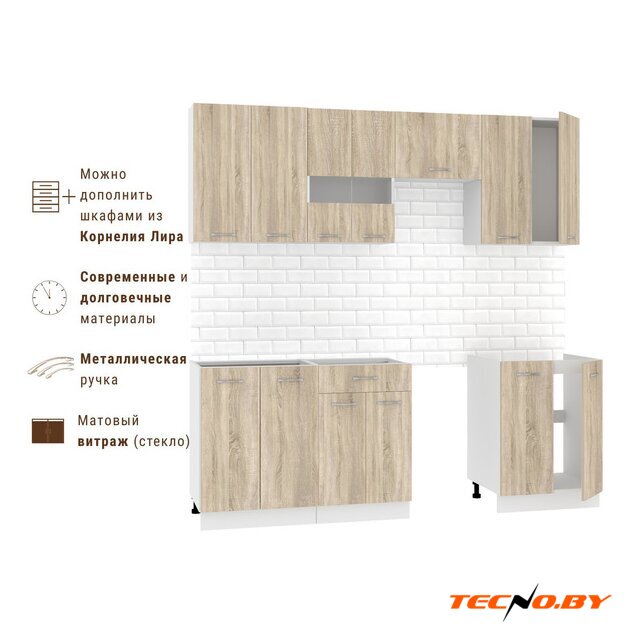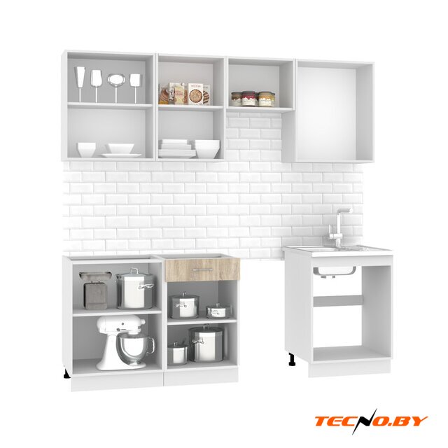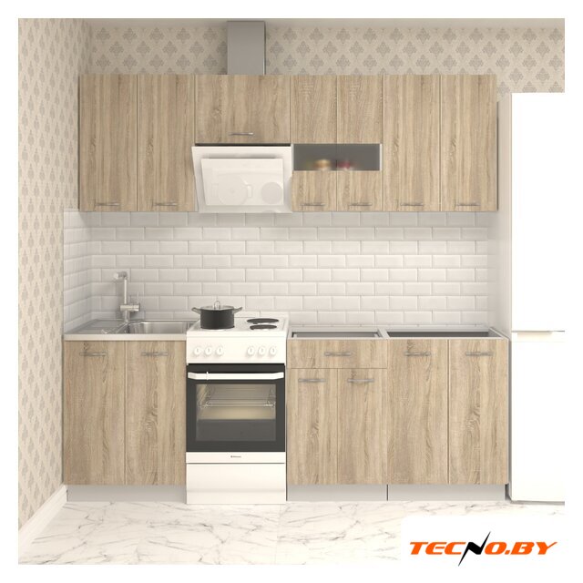 линейная, длина 200 см, ширина 60 см, каркас ЛДСП, фасад ЛДСП, установка мойки: врезная мойка, ширина шкафа под мойку 60 см