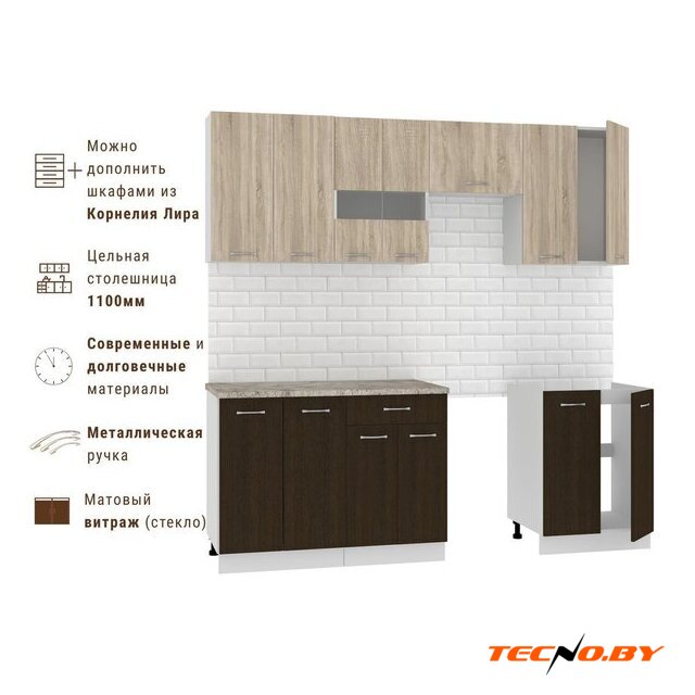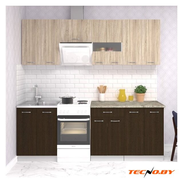 линейная, длина 220 см, ширина 60 см, каркас ЛДСП, фасад ЛДСП, установка мойки: накладная мойка, ширина шкафа под мойку 60 см