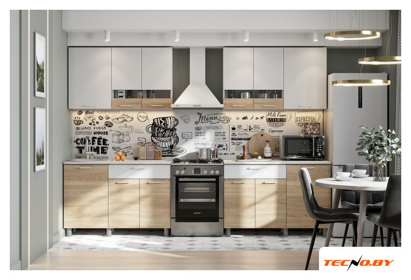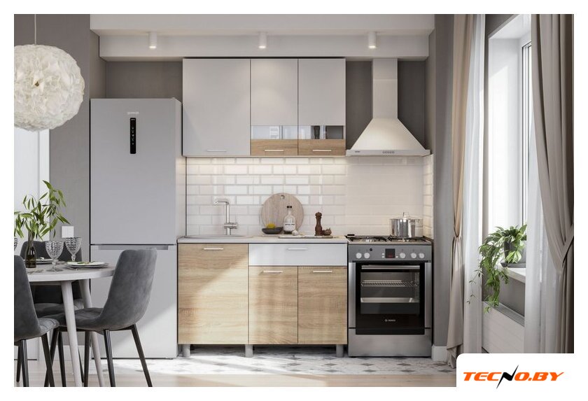 линейная, длина 200 см, ширина 60 см, каркас ЛДСП, фасад ЛДСП/стекло, установка мойки: врезная мойка, ширина шкафа под мойку 80 см