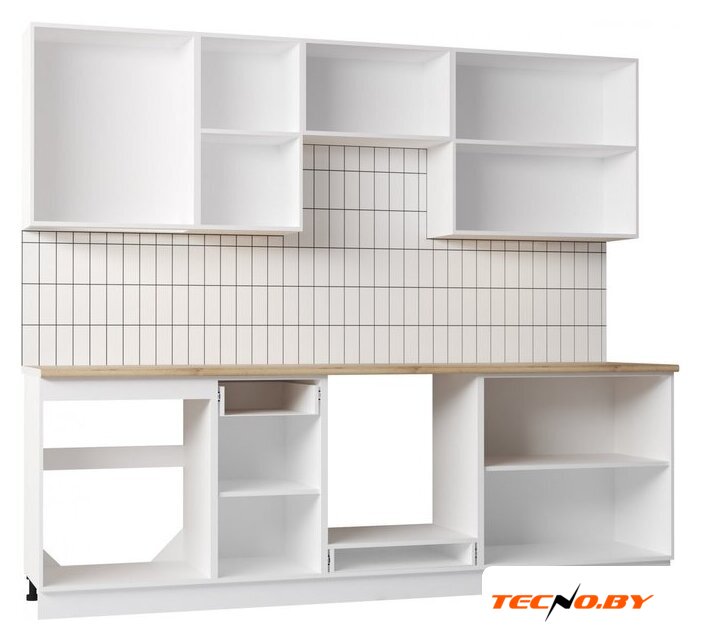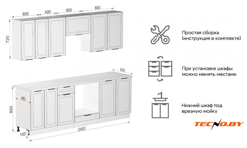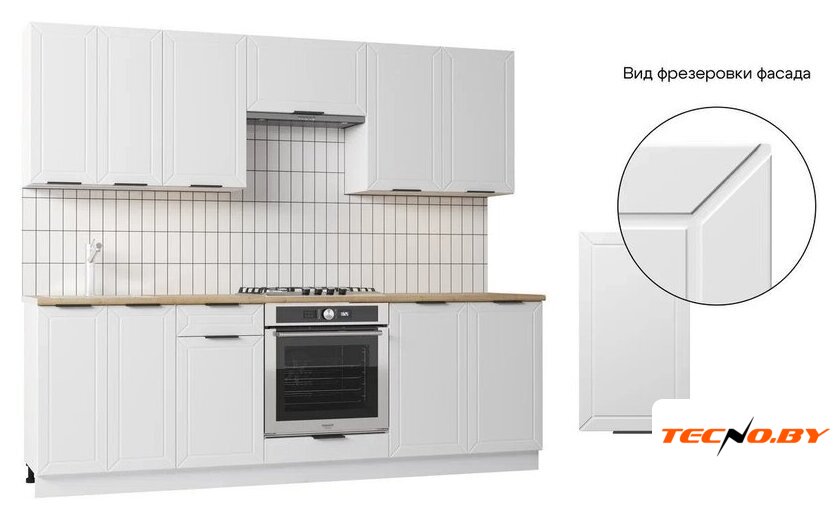 линейная, длина 220 см, ширина 60 см, каркас ЛДСП, фасад МДФ пленочный, установка мойки: врезная мойка, ширина шкафа под мойку 50 см