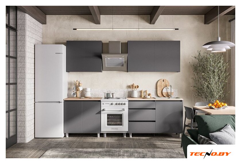 линейная, длина 200 см, ширина 60 см, каркас ЛДСП, фасад ЛДСП/постформинг, установка мойки: врезная мойка