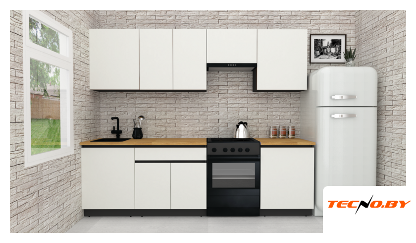 линейная, длина 260 см, ширина 60 см, каркас ЛДСП, фасад МДФ пленочный, установка мойки: накладная мойка, ширина шкафа под мойку 60 см