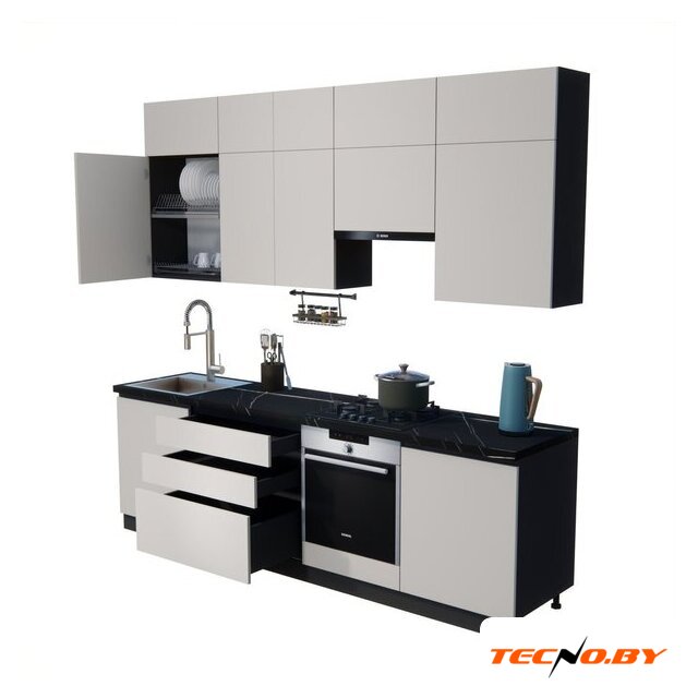 линейная, длина 240 см, ширина 60 см, каркас ЛДСП, фасад ЛДСП, установка мойки: врезная мойка, ширина шкафа под мойку 60 см