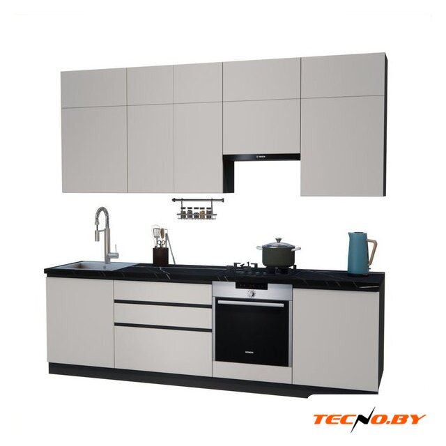 линейная, длина 270 см, ширина 60 см, каркас ЛДСП, фасад МДФ пленочный, установка мойки: врезная мойка, ширина шкафа под мойку 80 см