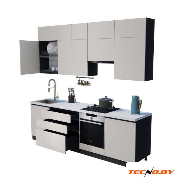 линейная, длина 240 см, ширина 60 см, каркас ЛДСП, фасад ЛДСП, установка мойки: врезная мойка, ширина шкафа под мойку 60 см