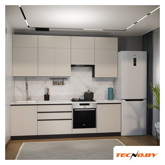 линейная, длина 290 см, ширина 60 см, каркас ЛДСП, фасад МДФ пленочный, установка мойки: врезная мойка, ширина шкафа под мойку 60 см