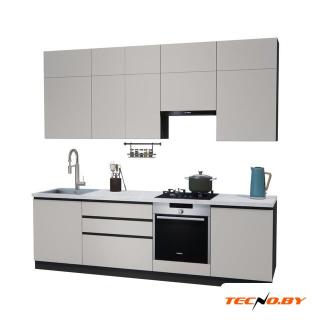 линейная, длина 270 см, ширина 60 см, каркас ЛДСП, фасад МДФ пленочный, установка мойки: врезная мойка, ширина шкафа под мойку 80 см