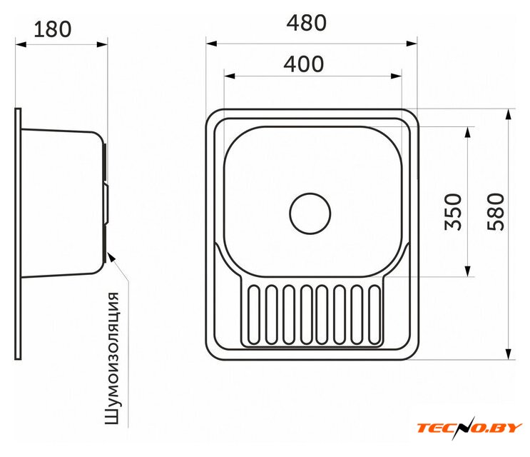 врезная на столешницу, нержавеющая сталь, размеры: 60x60 см, глубина чаши: 16 см