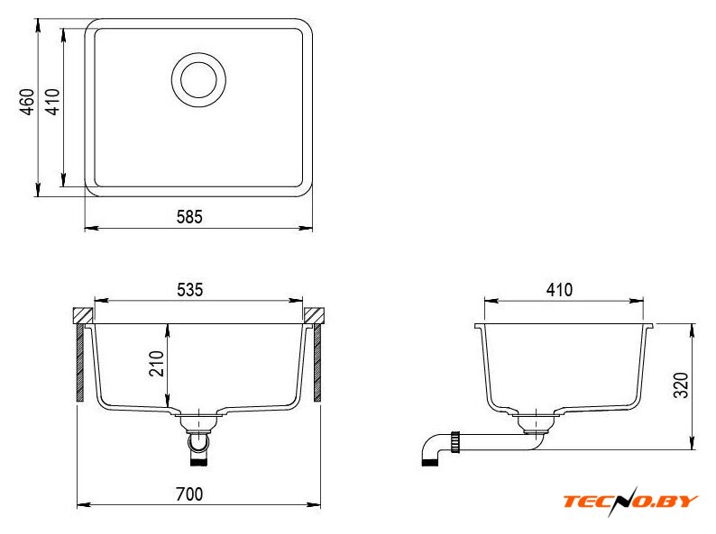 врезная на столешницу, искусственный камень, размеры: 100x51.5 см, глубина чаши: 21 см, в шкаф шириной от 60 см