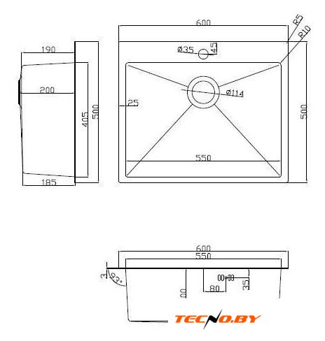 врезная на столешницу, нержавеющая сталь, фактура: матовая, размеры: 60x50 см, глубина чаши: 20 см