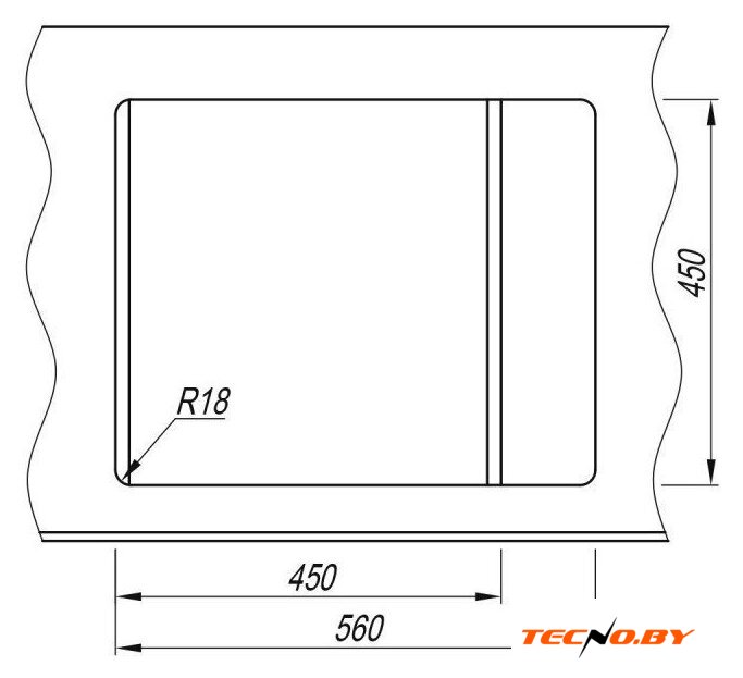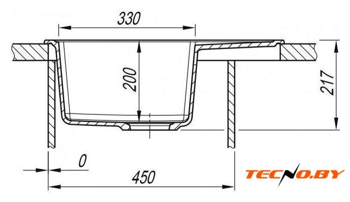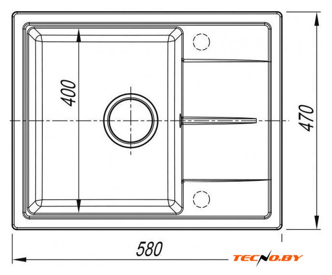 врезная на столешницу, искусственный камень, размеры: 58x47 см, в шкаф 45 см