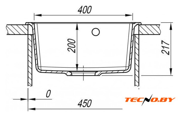 врезная на столешницу, искусственный камень, размеры: 47x51 см, в шкаф 45 см
