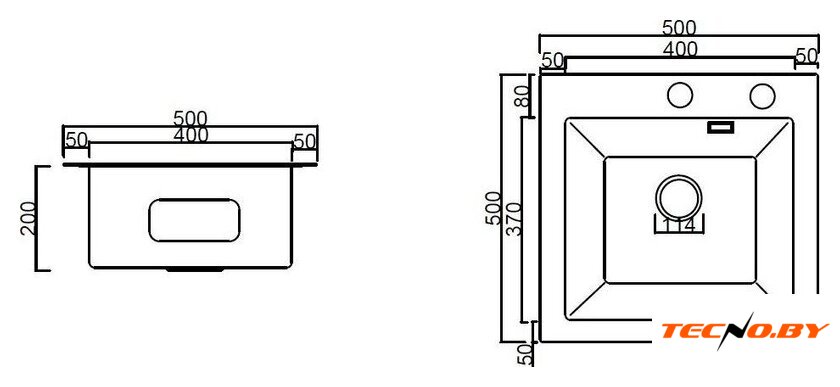 врезная под столешницу, нержавеющая сталь, фактура: полированная, размеры: 43.5x43.5 см, глубина чаши: 20 см, в шкаф шириной от 50 см