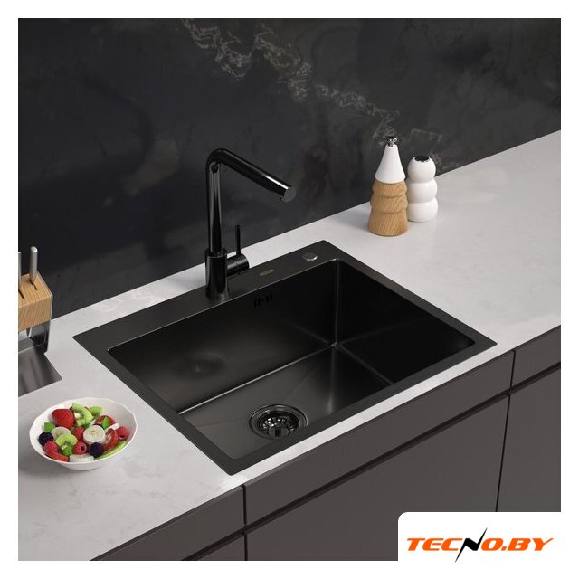 врезная на столешницу, кварц, фактура: с текстурой, размеры: 58x20 см, глубина чаши: 20 см, клапан-автомат
