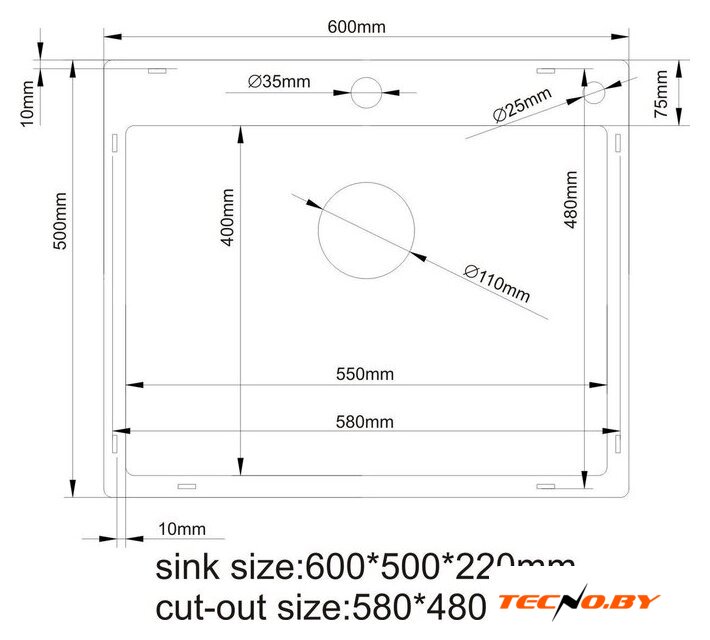 накладная/врезная на столешницу/врезная вровень со столешницей/врезная под столешницу, нержавеющая сталь, размеры: 50x50 см, в шкаф 53 см