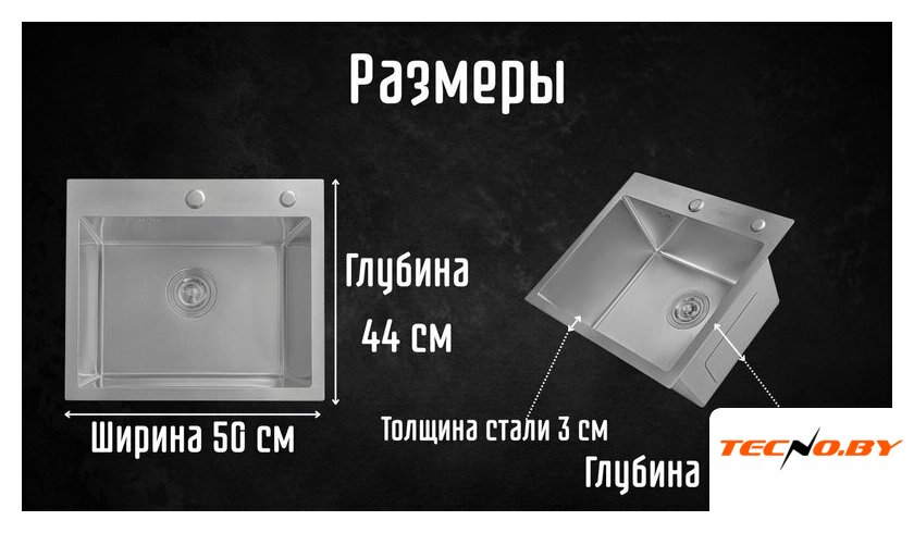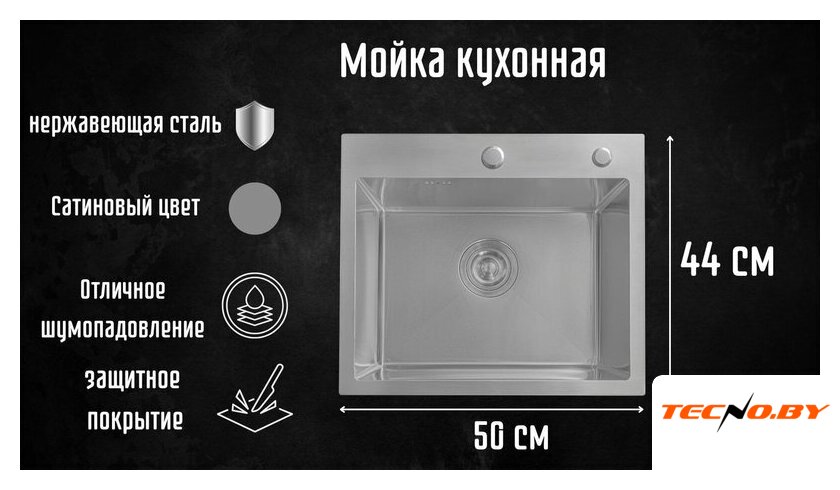 врезная на столешницу, искусственный камень, размеры: 49.5x64.5 см, глубина чаши: 19 см, в шкаф шириной от 45 см