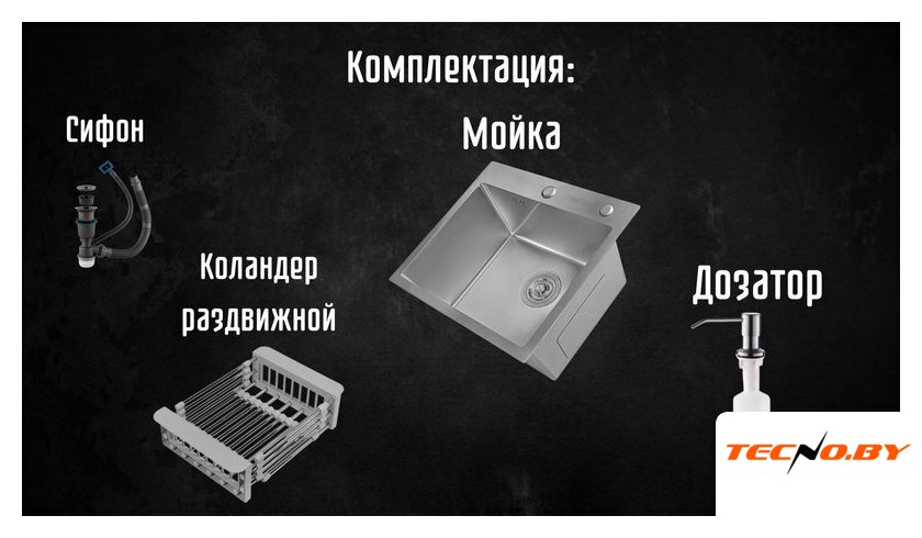 Комплектация | сифон, дозатор для моющего средства, коландер |