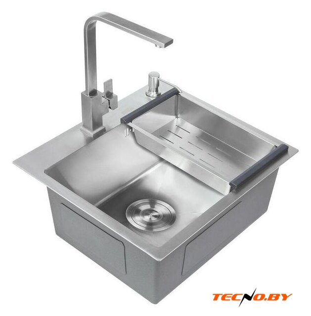 врезная на столешницу, нержавеющая сталь, фактура: с текстурой, размеры: 60x50 см, глубина чаши: 20 см, в шкаф шириной от 60 см