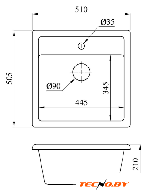 врезная на столешницу, искусственный камень, размеры: 51x50.5 см, в шкаф 50 см