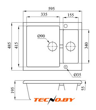врезная на столешницу, искусственный камень, размеры: 61.5x50 см, глубина чаши: 19 см, в шкаф шириной от 60 см