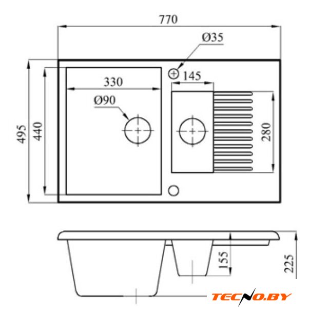 врезная на столешницу, искусственный камень, размеры: 93x51 см, глубина чаши: 18 см, в шкаф шириной от 90 см