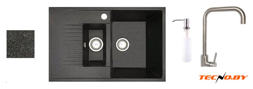 Комплектация | смеситель, кухонная мойка, дозатор для жидкого мыла |