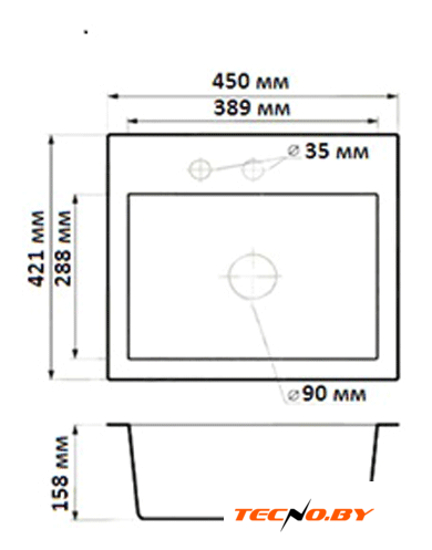 врезная на столешницу, искусственный камень, размеры: 44x44 см, глубина чаши: 18 см, в шкаф шириной от 45 см