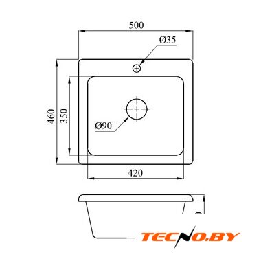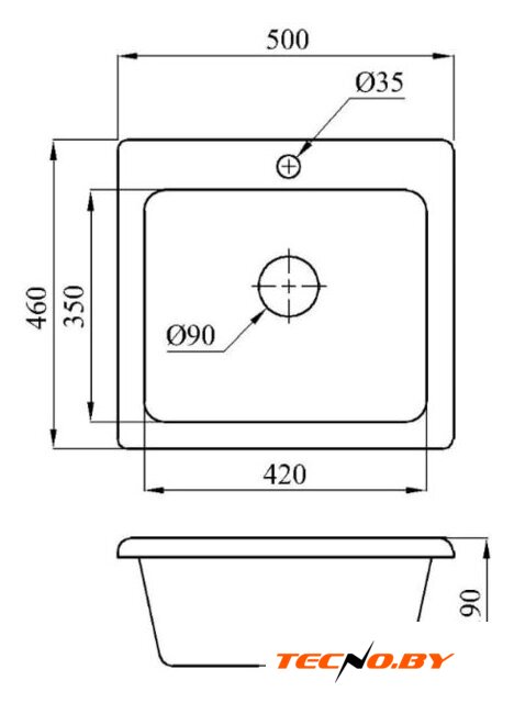 врезная на столешницу, искусственный камень, фактура: полированная, размеры: 50x46 см, глубина чаши: 19 см