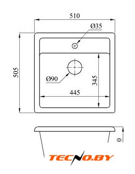 врезная на столешницу, искусственный камень, размеры: 51x50.5 см