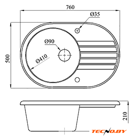 врезная на столешницу, искусственный камень, размеры: 50x61 см, глубина чаши: 19.5 см, в шкаф шириной от 50 см