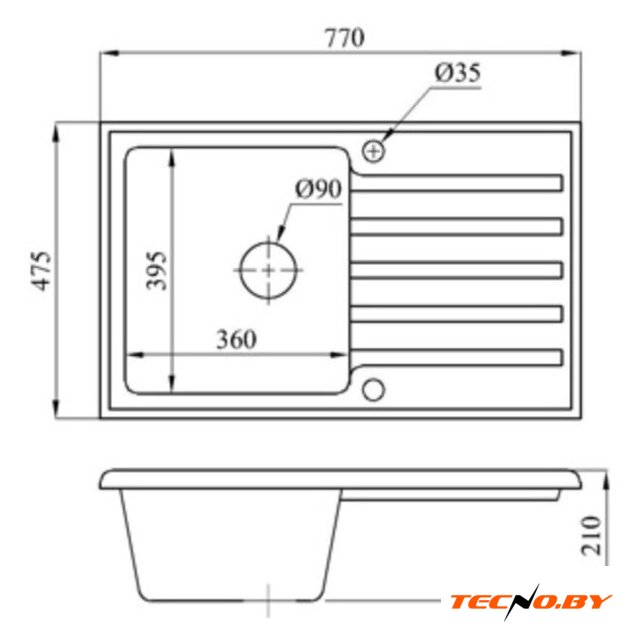 врезная на столешницу, искусственный камень, размеры: 65x50 см, глубина чаши: 19.5 см, в шкаф шириной от 50 см
