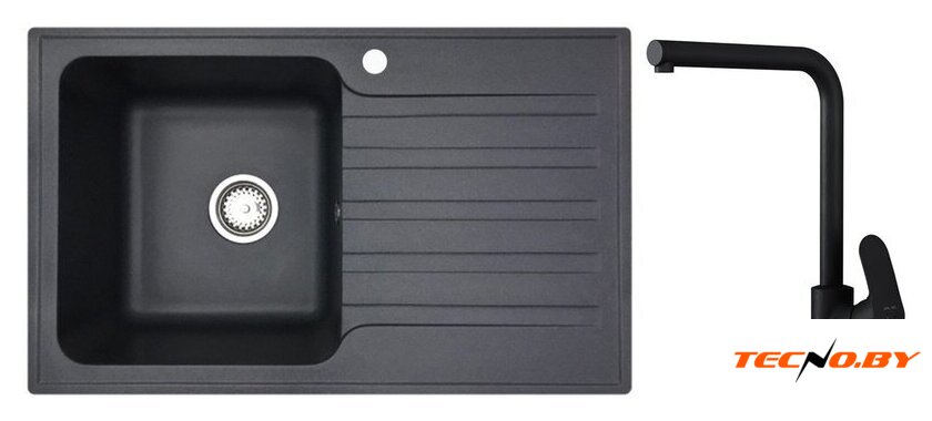 Комплектация | Мойка кухонная БелЭворс Styl L (черный), Смеситель AM.PM Like F8005022 |