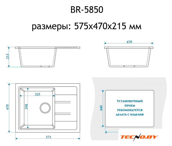 врезная на столешницу, искусственный камень, размеры: 57.5x47 см, в шкаф 50 см
