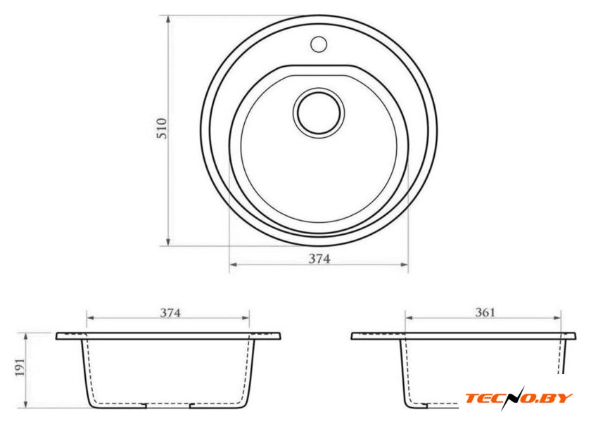 врезная на столешницу, искусственный камень, размеры: 51x51 см, в шкаф 50 см