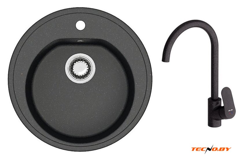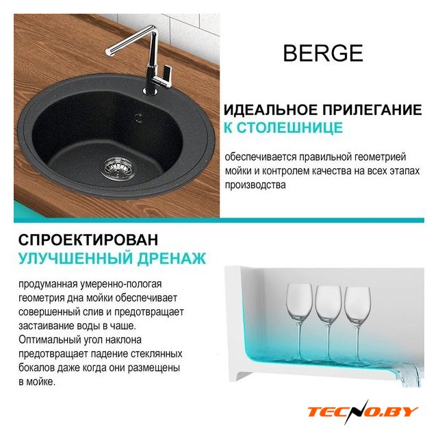 Комплектация | Мойка кухонная Berge BR-5200 (черный), Смеситель AM.PM Like F8007122 |
